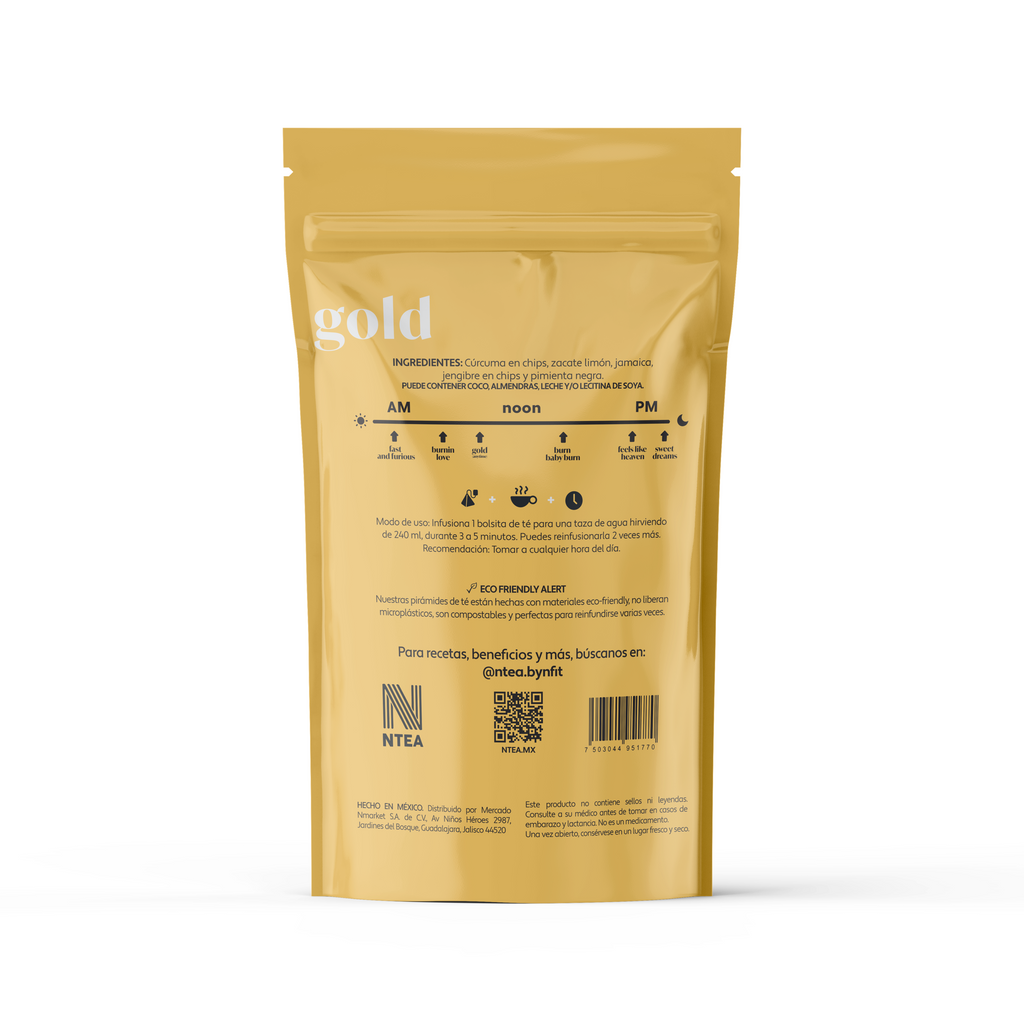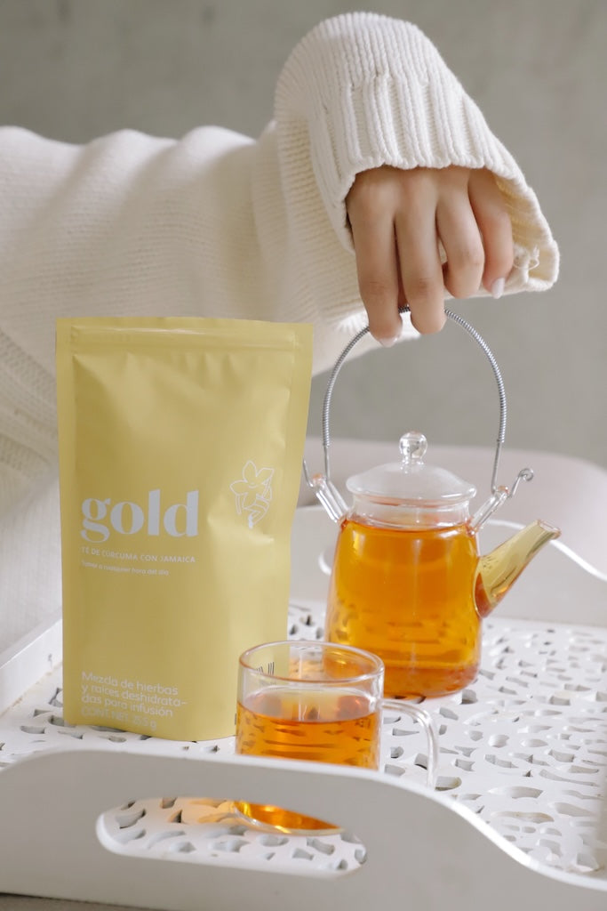 Descubre el delicioso sabor y los poderosos beneficios del Té Gold, una mezcla excepcional diseñada para nutrir y desinflamar tu cuerpo.