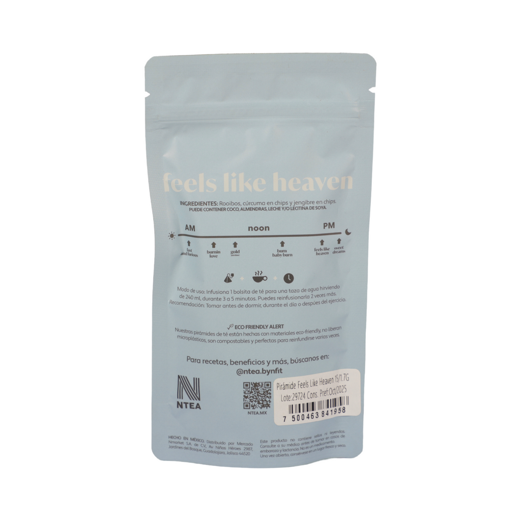 Experimenta el encanto de la naturaleza en cada taza. Con 15 infusiones eco-friendly en cada bolsa, ¡amarás cada momento con nuestro té Rooibos Africano con Cúrcuma y Jengibre de NTea!